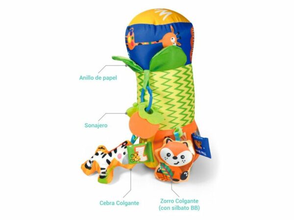 - ¡La almohada rodillo es ideal para estimular a tu bebé mientras está boca abajo! Esta posición ayuda a desarrollar fuerza en la parte superior del cuerpo, controla el peso de la cabeza y fortalece los músculos del cuello y los brazos. Viene con un sonajero, hojas de tela arrugada, y un peluche, además de un peluche de cebra y zorrito con ruiditos simpáticos, y 3 mordillos con formas de fruta para una experiencia de juego completa y entretenida.