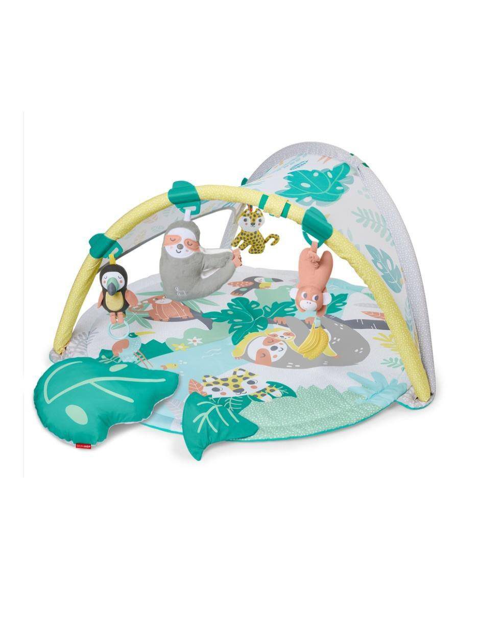 Gimnasio didáctico Skip Hop, colorido juguete que convierte la hora del juego en una aventura tropical con hojas exuberantes, bonitos animales y sonidos tranquilizadores. Con hermosas ilustraciones, un toldo de red y juguetes divertidos, este animado gimnasio de actividades ofrece una versatilidad dos en uno con un tranquilizador de perezoso desmontable para salir de casa