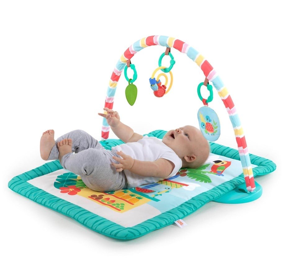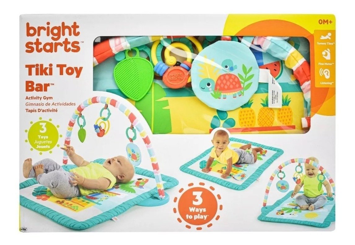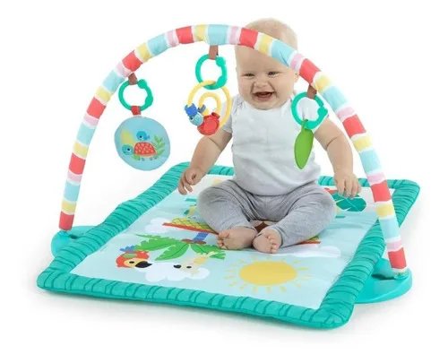 La barra de juguetes es removible para 3 formas de jugar: boca abajo, tumbarse y jugar o sentarse y jugar