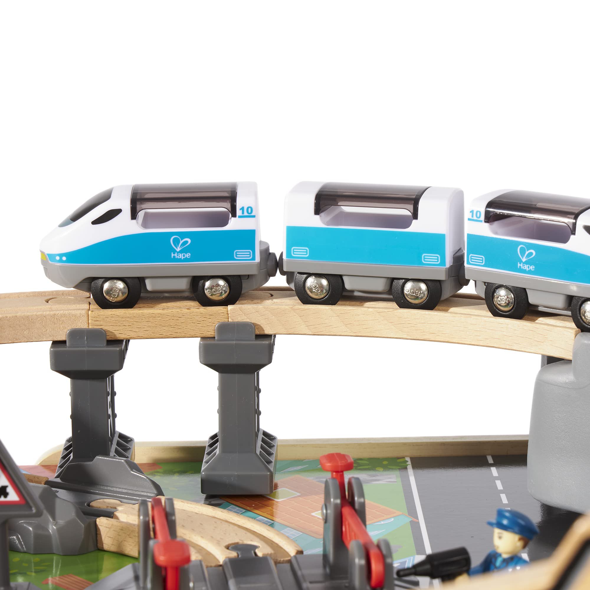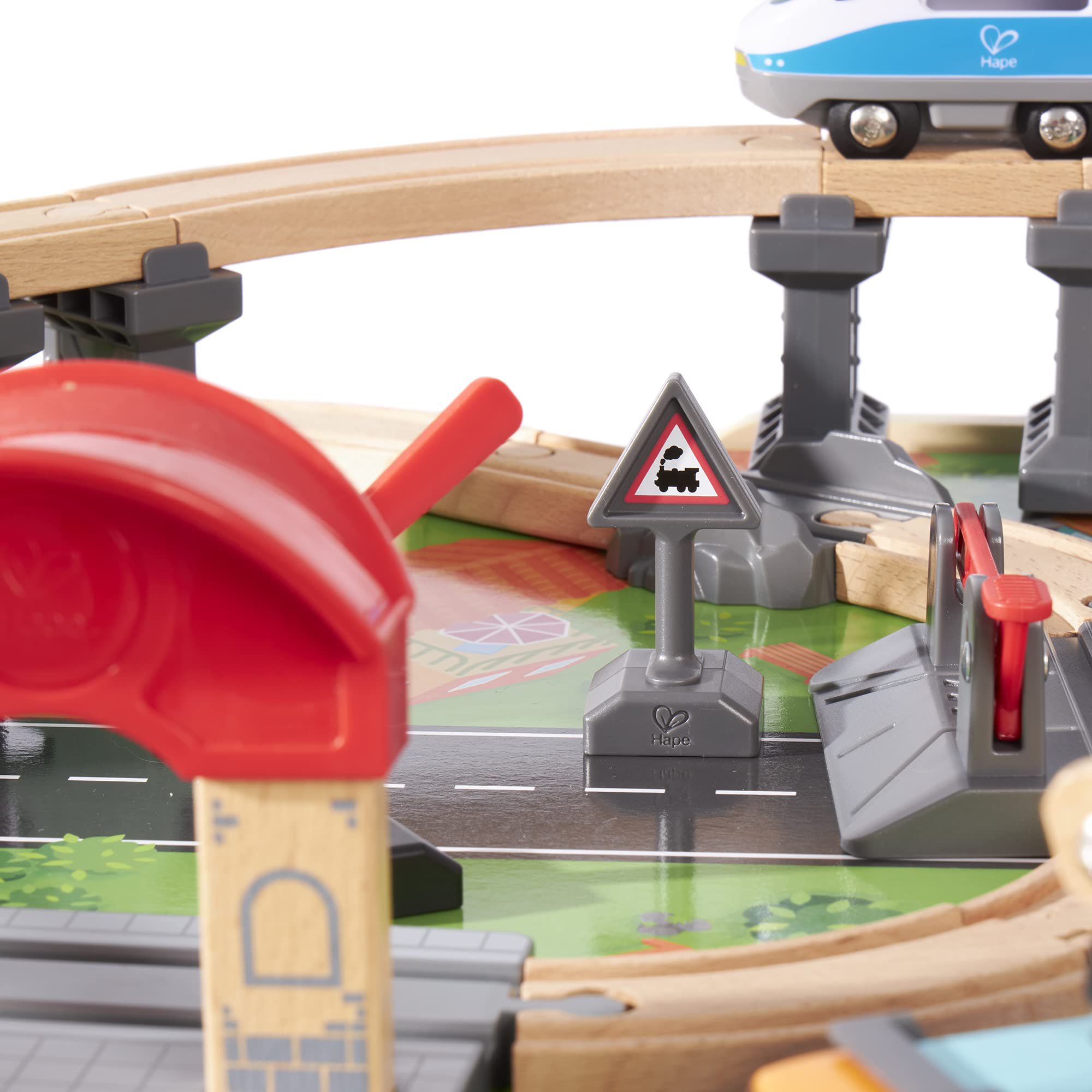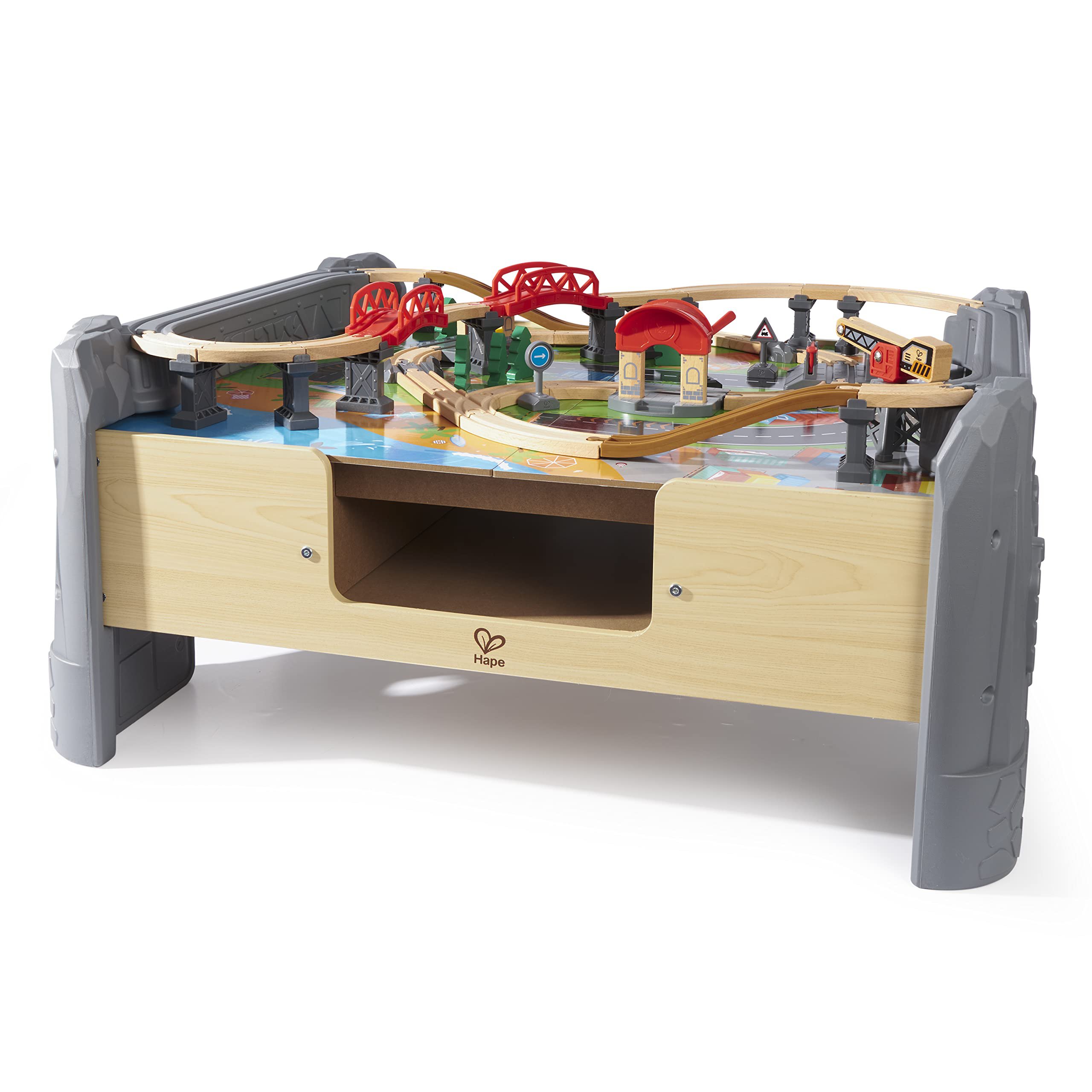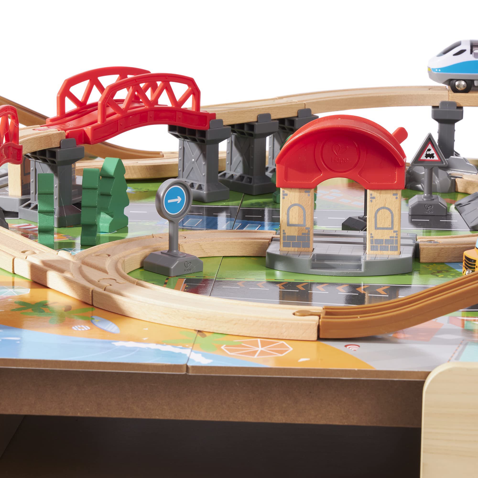 La parte superior de la mesa de tren incluye parques, lagos, montañas y ciudad para que tus pistas pasen. Coloca la pista de acuerdo con las instrucciones o utiliza tu imaginación para crear la tuya propia