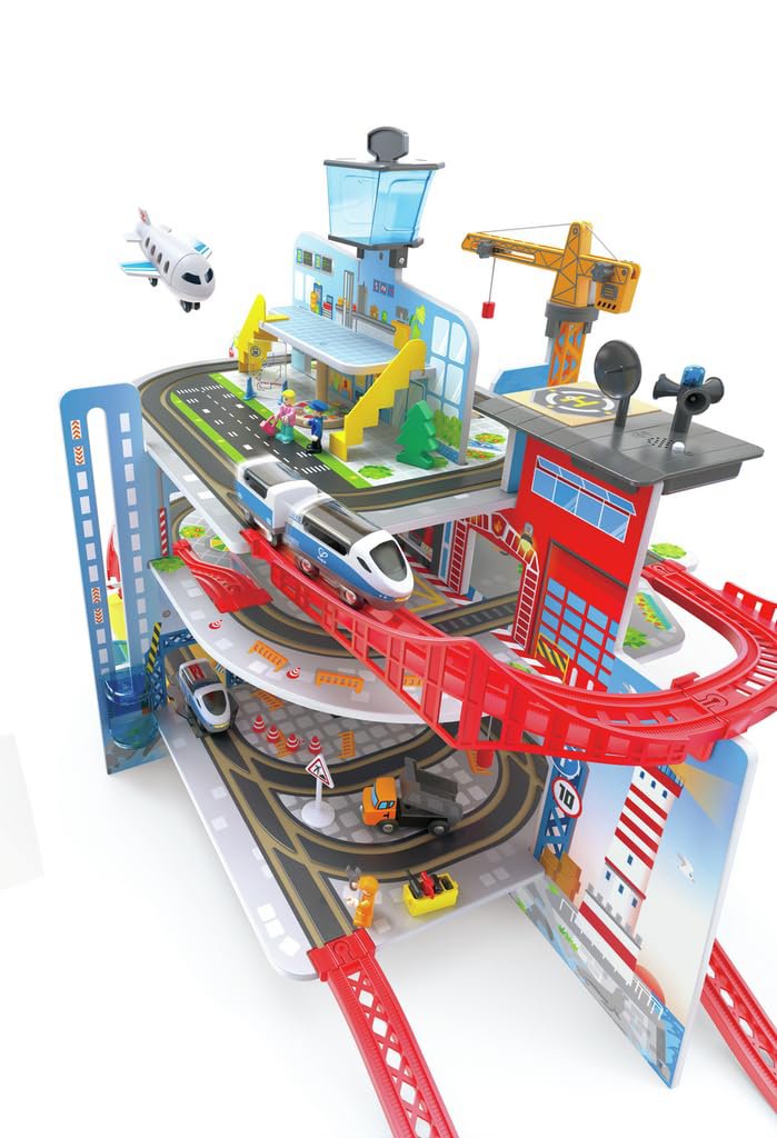 DISEÑO ATRACTIVO Y EDUCATIVO: Los niños y niñas podrán enviar su tren a un viaje por esta maravillosa ciudad. Encuentra diversión sin fin através de 5 pisos con 8 secciones como aeropuerto, parque de atracciones; descubre profesiones, medios de transporte y partes de la ciudad