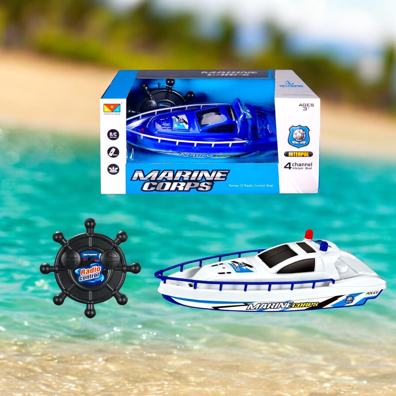- Funciona con control remoto, lo que permite maniobrar la lancha a distancia.