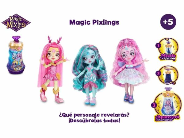 Prepárate para un unboxing mágico, disfruta creando una auténtica poción mágica y descubre qué muñeca Magic Mixies Pixling te ha tocado. Para disfrutar de esta experiencia solo has de mezclar los líquidos mágicos en el recipiente, decir las mágicas palabras Magius Mixus! Y disfrutar de tu nueva y mágica muñeca sorpresa. ¡Hay 3 modelos diferentes para jugar y coleccionar!