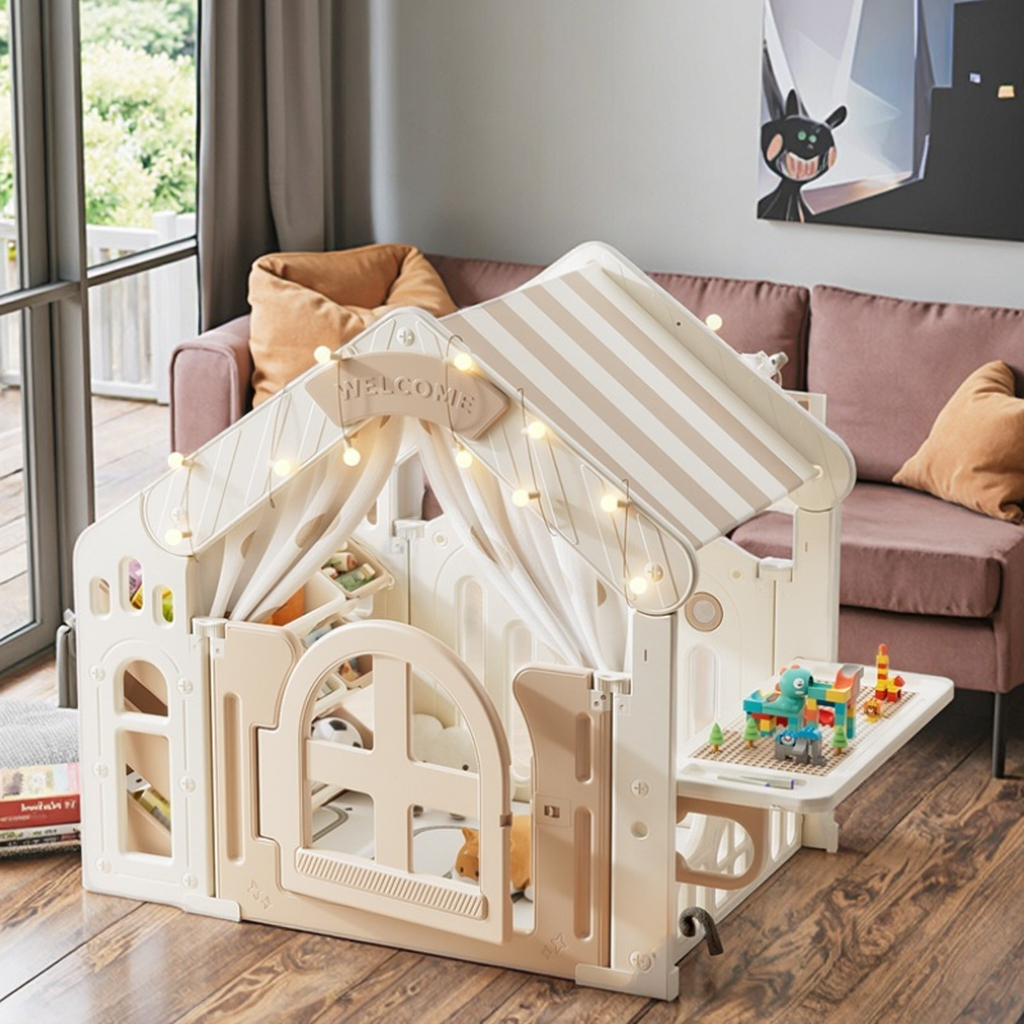 Moderna Casa de Juegos Infantil de Plástico para Interiores/Exteriores Tipo Tienda o Castillo con Base Secreta para Jugar