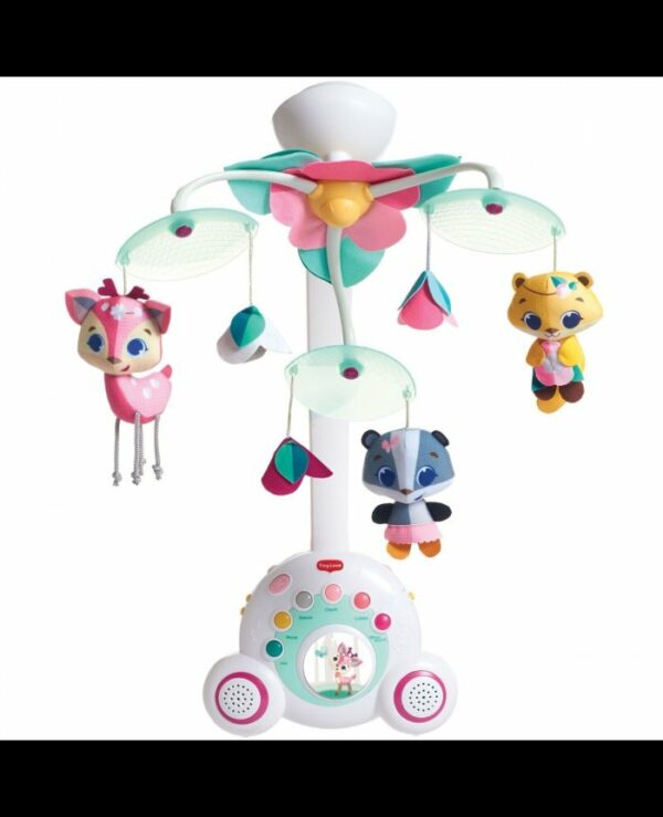 El móvil crece con su bebé transformándose desde un móvil de cuna hasta una caja de música independiente que el bebé puede llevar de un lado a otro. El botón de control activado por el bebé fomenta su independencia y le motiva a explorar y aprender.